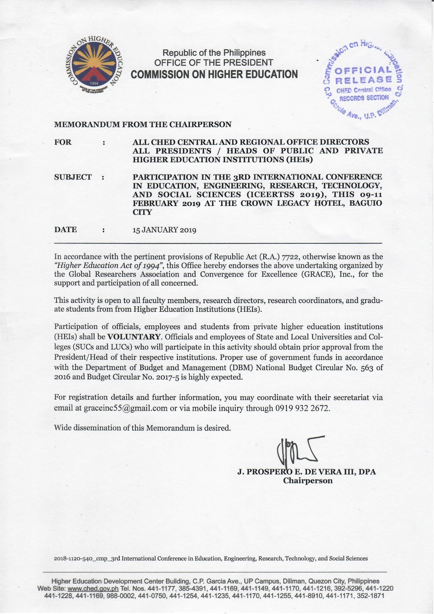 6th International Conference on Education, Research, Technology, and Social Sciences